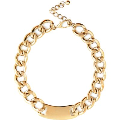 Image Name: Gold tone curb chain tag necklace - necklaces - jewellery - women